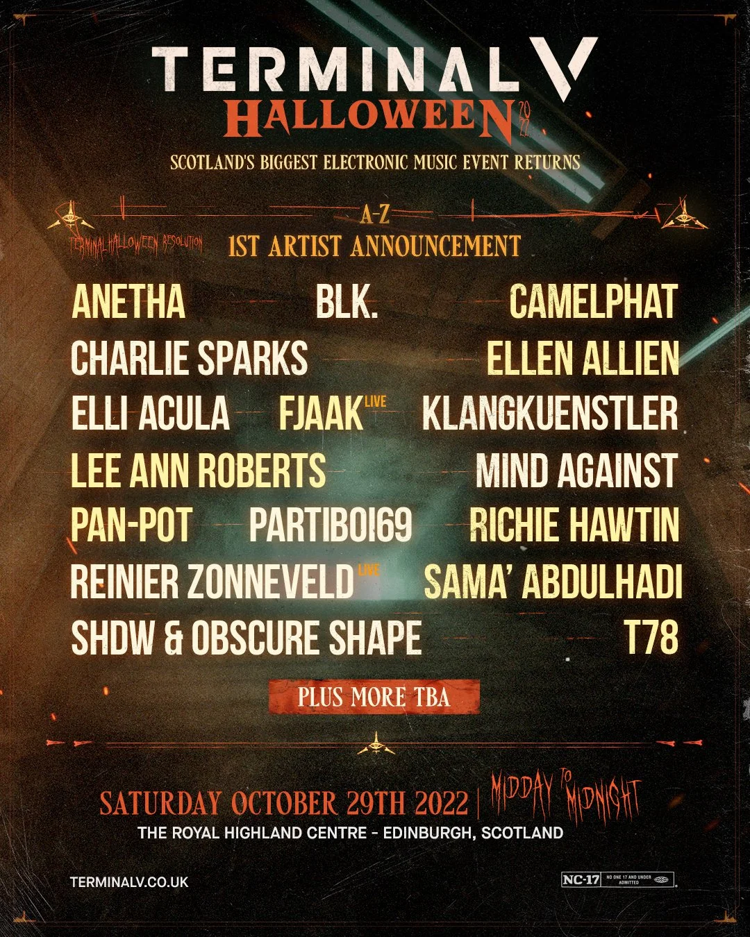 SCOTLAND'S BIGGEST ELECTRONIC MUSIC EVENT IS BACK WITH A BANG ON 29TH OCTOBER 2022 AS TERMINAL V RETURNS WITH ITS FIRST HALLOWEEN EDITION IN 3 YEARS