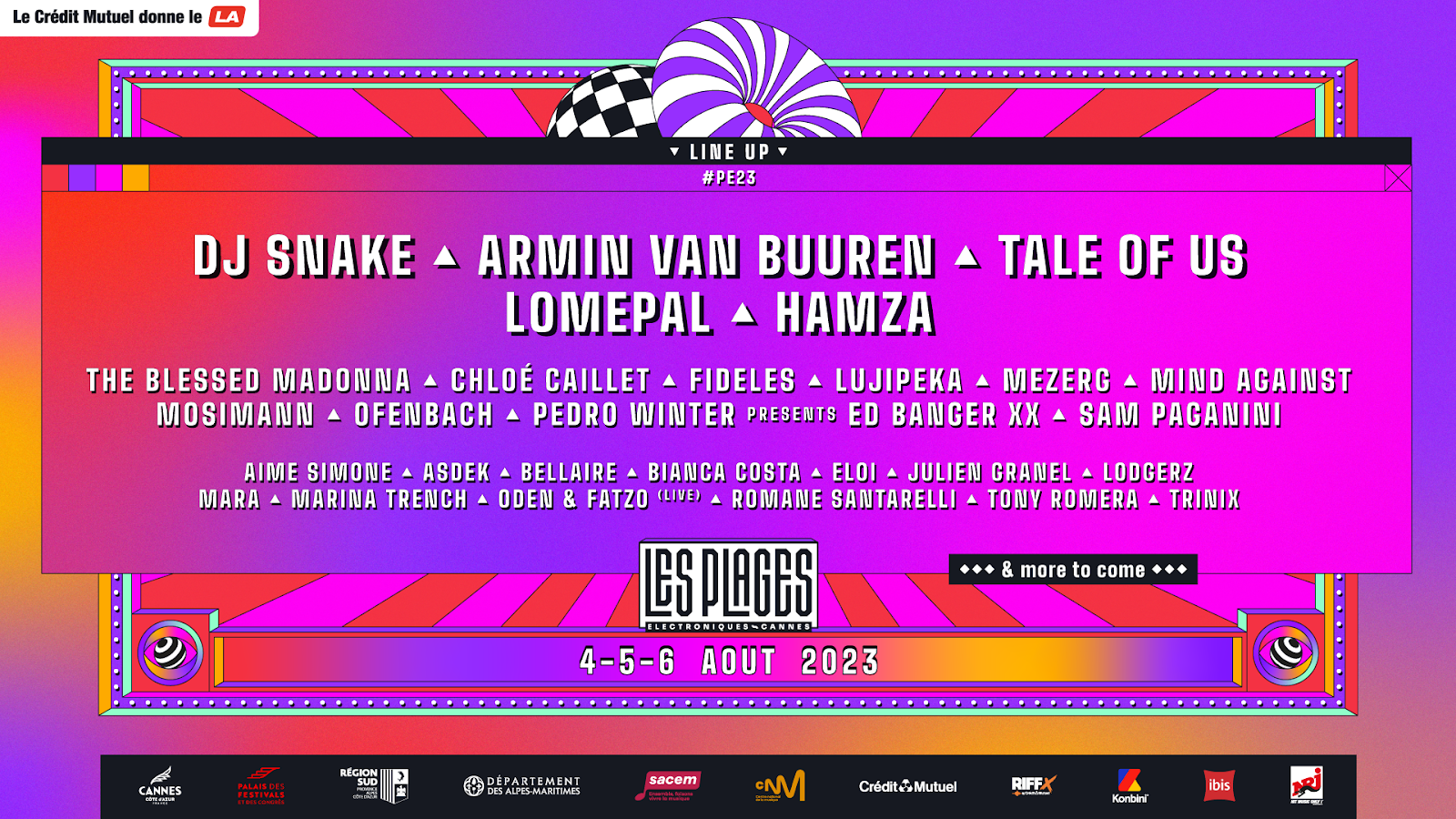 Les Plages Électroniques today announces the next phase of its mouth watering 2023 lineup for August 4th to 6th, 2023 on the beach at the foot of the Palais des Festivals in Cannes. Tale of Us, Fideles, Chloé Caillet, Aime Simone, Bianca Costa, Lodgerz, Mara, Mosimann, Tony Romera and Trinix join the already announced DJ Snake, Armin Van Buuren, Lomepal, Pedro Winter pres. Ed Banger XX, Mind Against, Sam Paganini, Ofenbach, The Blessed Madonna, Oden & Fatzo (live), Marina Trench and more.