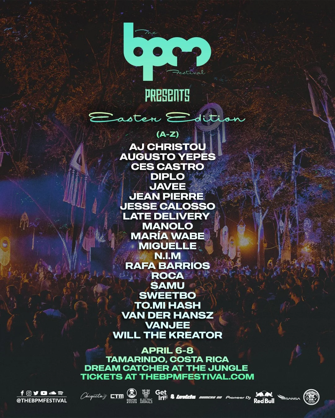 Six weeks ago, The BPM Festival made its way back to its beloved home base, Tamarindo, Costa Rica. Returning after a multi-year hiatus, the sacred grounds of Tamarindo were met with the rapturous applause of its guests that spanned across 40 nationalities. Following a teaser that was unveiled on the festival's social media platforms, The BPM Festival has confirmed it will return to Tamarindo’s exquisite beaches for a surprise Easter Edition brimming with music, dance, and pure celebration. After the resounding success of its return in January, BPM plans to keep the momentum going with a weekend that promises to be even more extraordinary. Taking place across the Easter holiday weekend, on April 6, 7, and 8, 2023, the Dreamcatcher stage within the jungle will transform into an intimate haven for music lovers. With each day bringing a unique vibe and energy, the BPM Festival Easter edition promises to be an incredible celebration of music and culture. With a carefully curated lineup featuring performances from AJ Christou, Diplo, Jesse Calusso, Late Delivery, N.I.M, Miguelle, Rafa Barrios, Samu, Vanjee, and more, attendees can expect to immerse themselves in the rhythms and beats of the world’s most aesthetic festival.