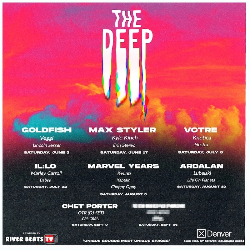 River Beats TV boasts an extensive streaming schedule, kicking off with Colorado’s celebrated Sonic Bloom Festival, as well as River Beats’ own rooftop pool party event series THE DEEP. Taking place at the X Denver and offering sprawling views of the city’s landscape, THE DEEP will welcome headliners including Ardalan, Goldfish, Chet Porter, Marvel Years, Max Styler, VCTRE, and il:lo.