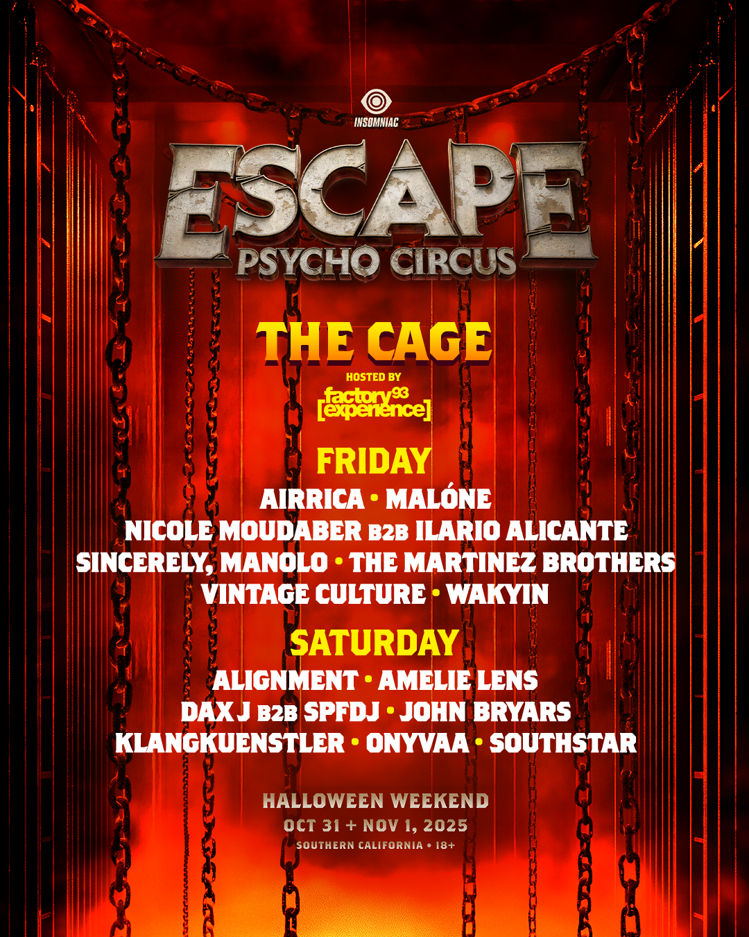 Insomniac Events and Escape Psycho Circus have announced the by stage lineups for the festival’s 2025 edition. This year, Escape will welcome a hauntingly vast lineup of over 90 globally renowned artists across 5+ immersive stages, including the debut of a brand new main stage that will redefine the heart of the festival’s production.