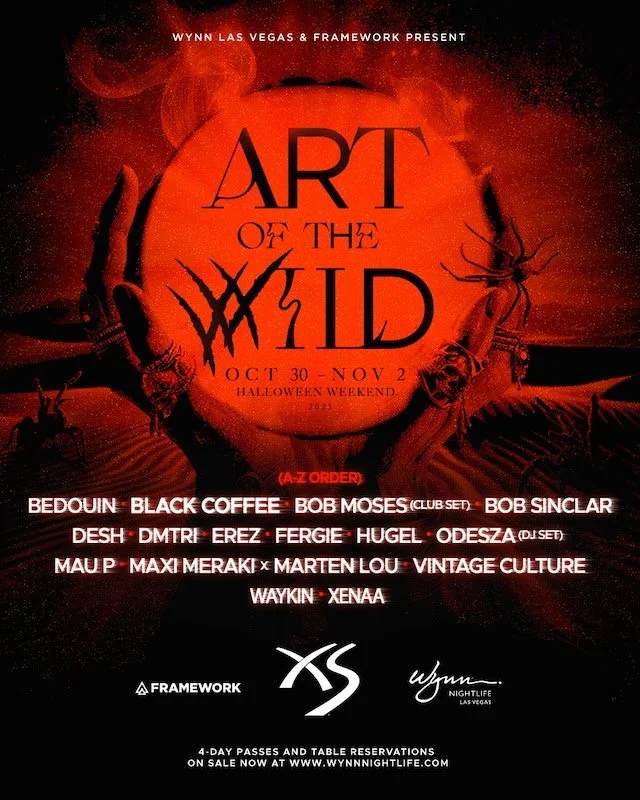 Between Thursday, October 30 - Sunday, November 2, Framework will once again produce Wynn Las Vegas’ annual Art of The Wild festival - taking place at the iconic nightlife destination XS Nightclub. This year’s installment of the four-day soiree features a stacked lineup of house and techno luminaries, including headliners such as Black Coffee, Vintage Culture, Mau P, ODESZA (DJ Set), Fergie, Bob Moses (Club Set), Bedouin, Hugel, and Ahmed Spins.