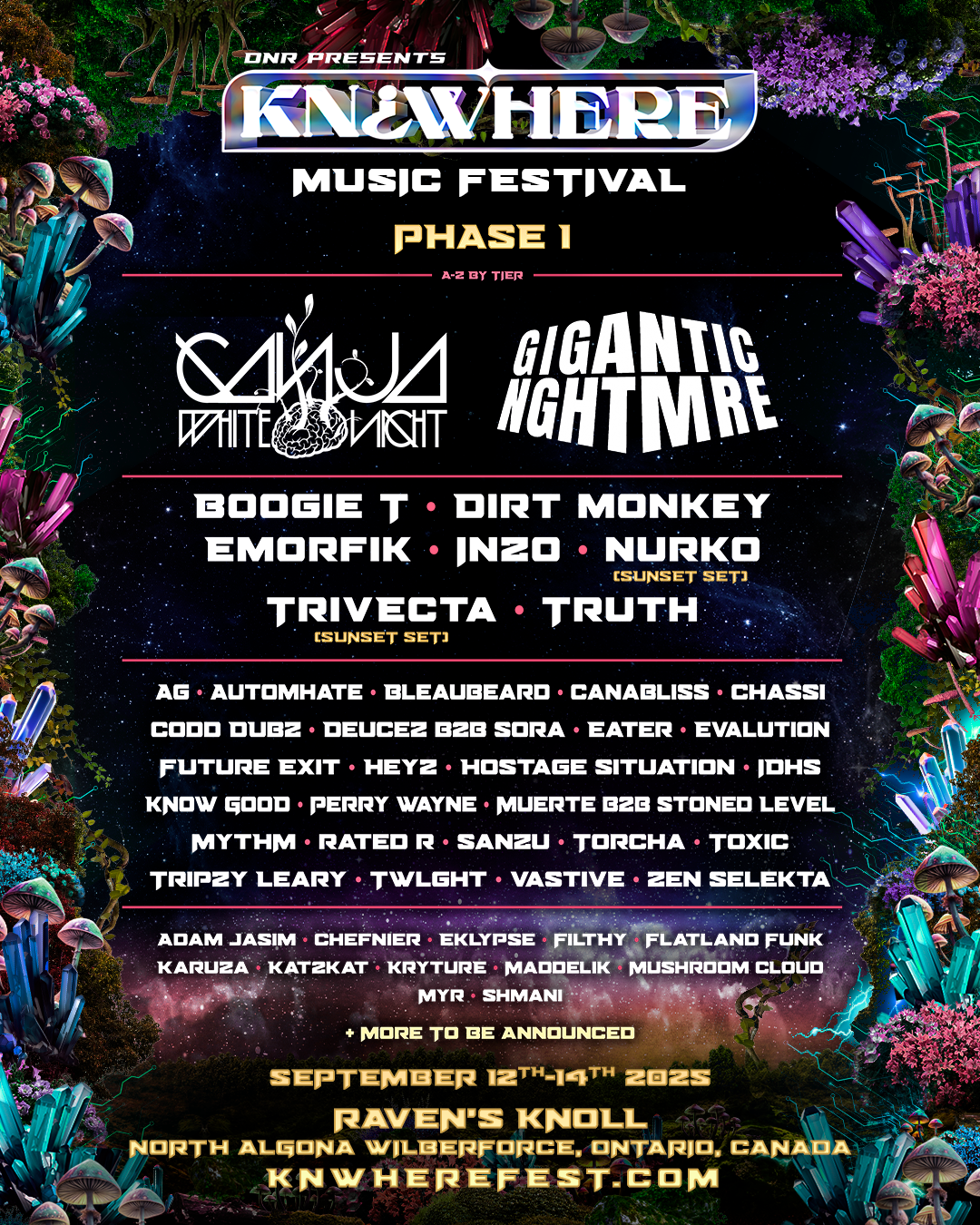 KN¿WHERE Festival officially announces its upgraded venue for its highly anticipated debut: Raven’s Knoll in North Algona Wilberforce, Ontario. Taking place from September 12–14, 2025, this inaugural edition promises a truly immersive bass music experience, merging cutting-edge performances with the raw, natural beauty of the Canadian wilderness.